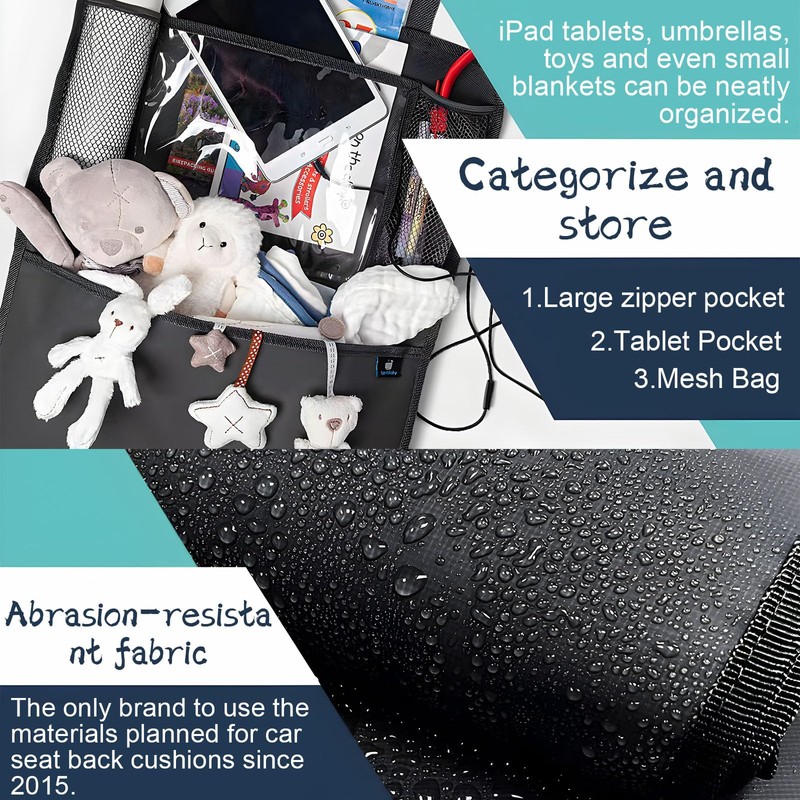- Masif saklama, seyahat düzeni: Depolama modeli çok katmanlı saklama çantası ve özel tablet yerleştirme alanı ile donatılmıştır, biberon, oyuncak, seyahat belgeleri, küçük eşyalar ve tabletler, kolay erişilebilir, sınıflandırma depolama, araba kaosuna veda edin, böylece her seyahat rahat ve verimlidir.