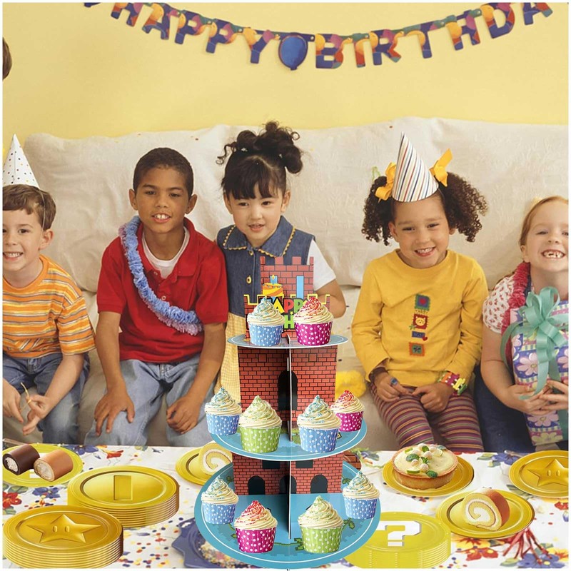 Zliisang Video Games Cupcake Stand Games Cupcake Toppers Birthday Party Supplies Birthday Table Decoration Cupcake Tier Stand 3 Tier Cupcake Tower Tiered Dessert Stand for Birthday Decorations