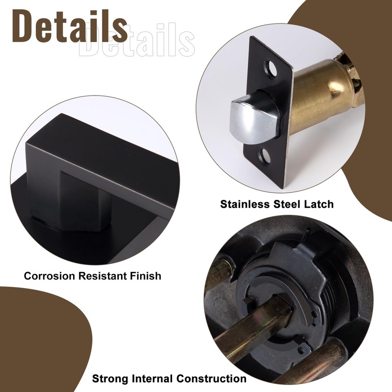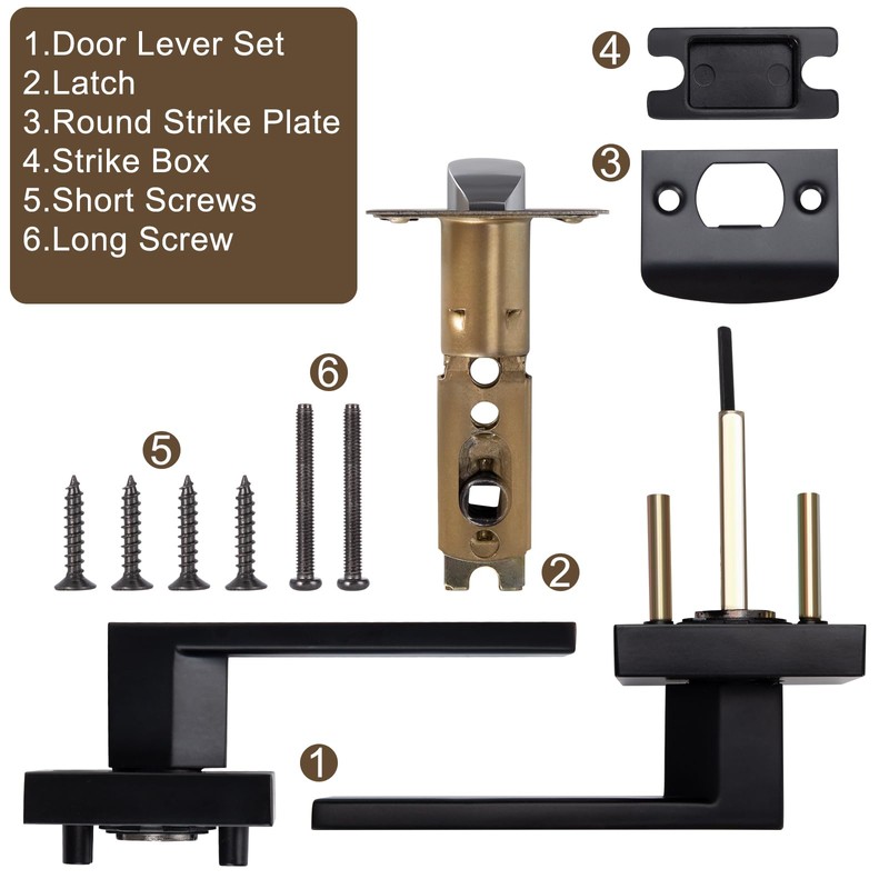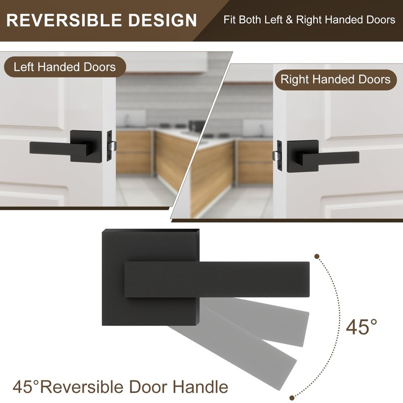 - Easy installation: all accessories are equipped with door handles, including door latches, strike plates, screws and instructions. The installation can be completed in minutes with just one screwdriver. The reversible door lever provides flexibility for installation on both left and right-handed doors.