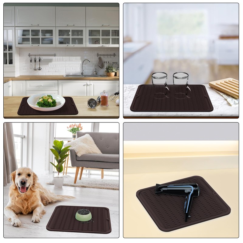 ZLR Silicone Dish Drying Mat for Kitchen Counter, Eco-Friendly Quick Dry Dish Mat, Easy Clean Multi Usage Drying Matt, Heat Resistant Trivet, 12" x 16" Large, Coffee