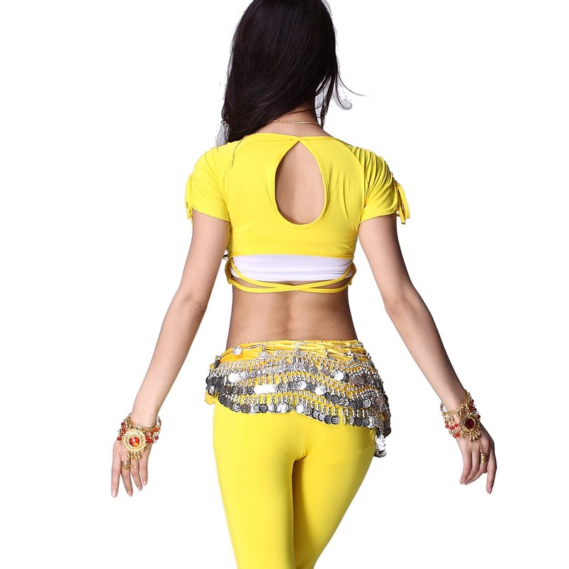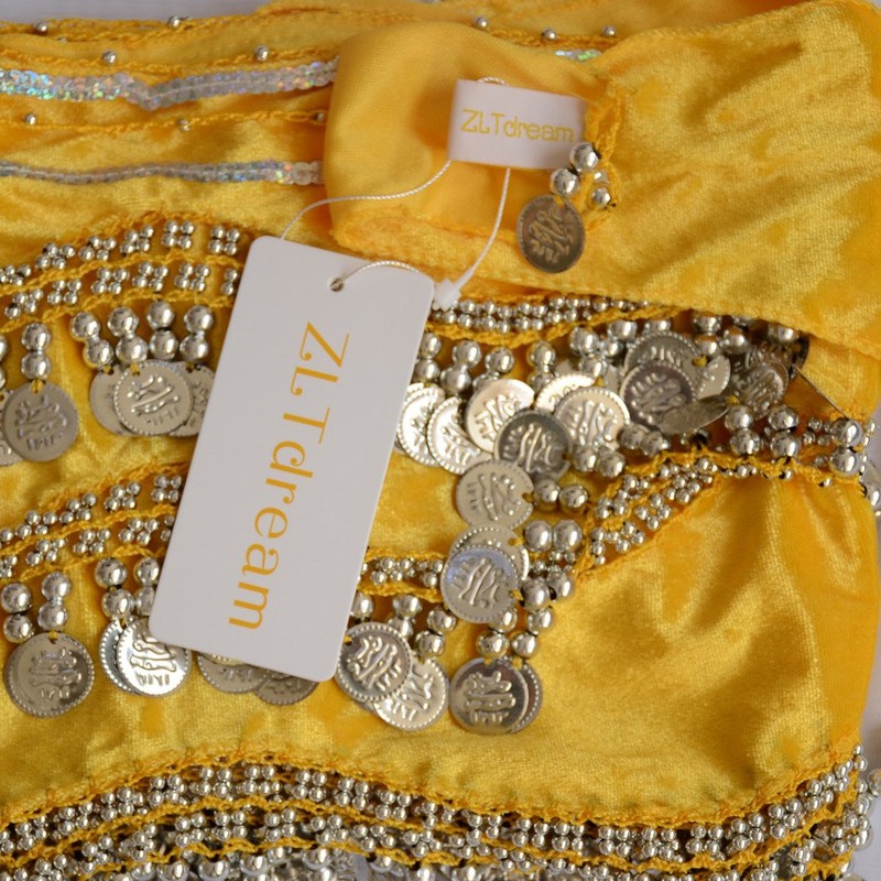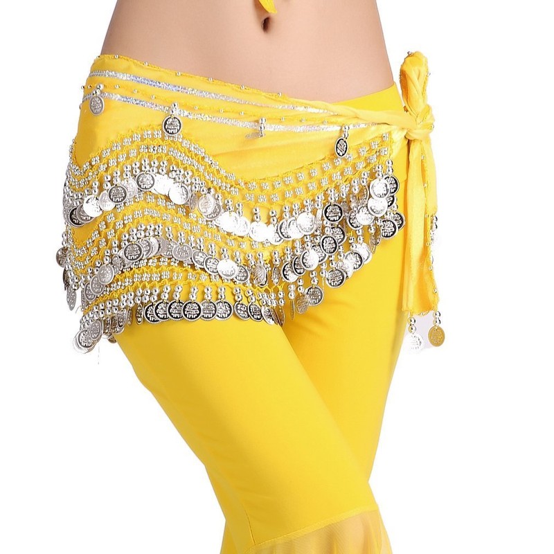 ZLTdream Women's Belly Dance Wave Shape Hip Scarf With Silver Coins Yellow