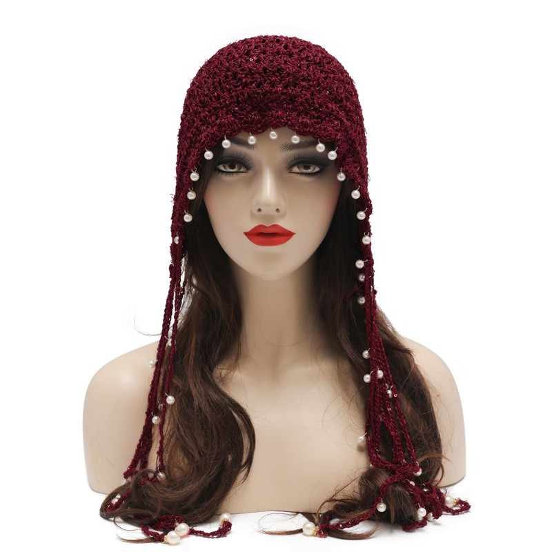 - Handcrafted Design: Vintage-inspired crochet hat features cascading pearl tassels in a stunning waterfall effect complemented by shimmering sequin accents for eye-catching appeal.