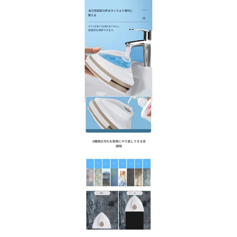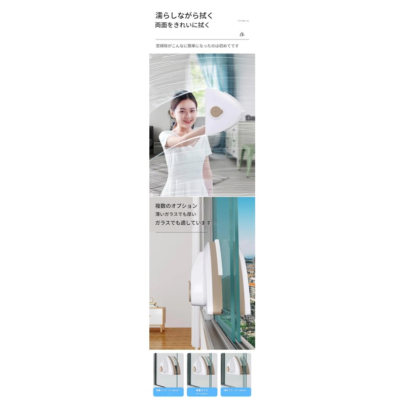 zmart マグネット 窓 ガラス クリーナー ワイパー ブラシ 両面 磁石 磁気 水槽 バスルーム 8-15mm ウィンドウ ガラス ツール 家庭用 クリーニング ツール を洗うための ブラシ 磁石窓拭き 窓掃除道具 窓拭き 掃除用マグネット 磁気窓クリーナー 磁力式 二重面窓