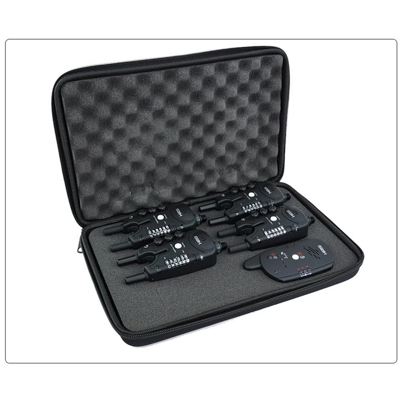 The S8 set is designed for ease of use and portability. The alarm and receiver are stored in a protective PU case with a zipper to ensure the safety of carrying Receiver requires 3 AAA batteries and 1 9V battery for bite alarm, both are not included in the package. The S8 set is offered in two configurations: Model S8-3 (set 1+3) and Model S8-4 (set 1+4), so you can choose according to your preferences and needs. With over 150 meters wireless range, the S8 set always connected with your gear, so you can enjoy fishing with confidence.