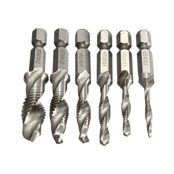 zmart HSS Hex Shaft Tap M3 M4 M5 M6 M8 M10 Impact 6 Pcs Drill Bit Hex Shank T...