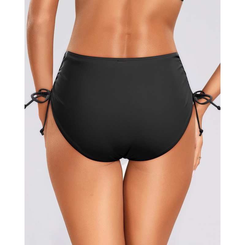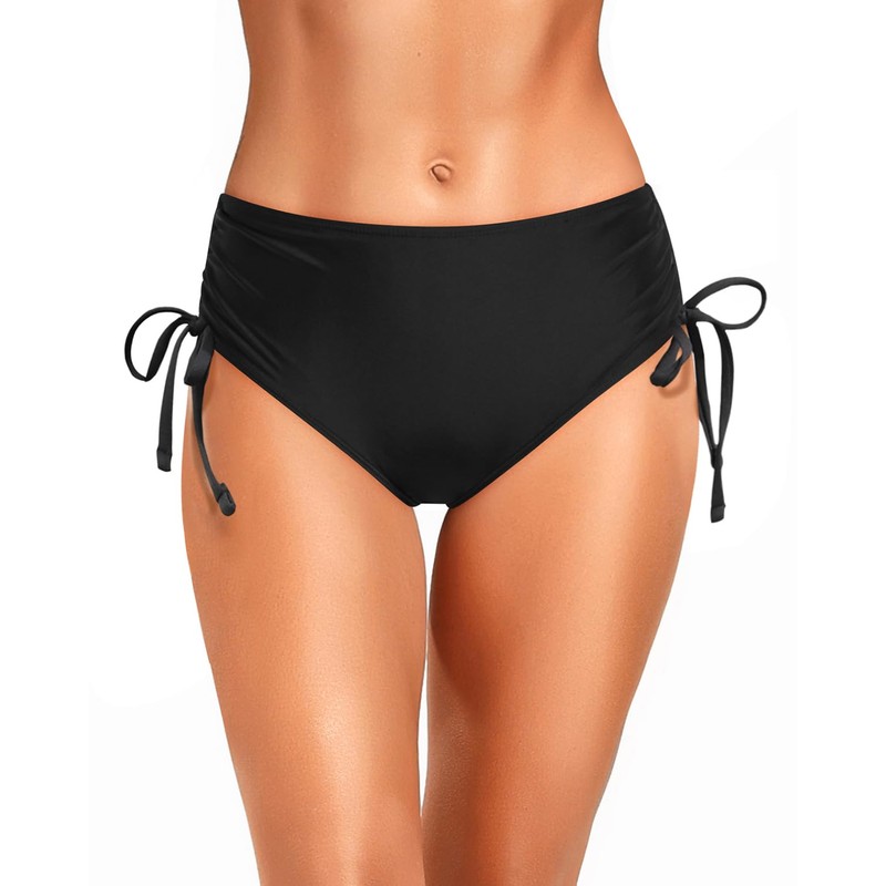 Zmart Women Full Coverage Bikini Bottom Adjustable Side Tie Swim Bottom with Side Ruched Mid Rise Bathing Swimsuit Black L