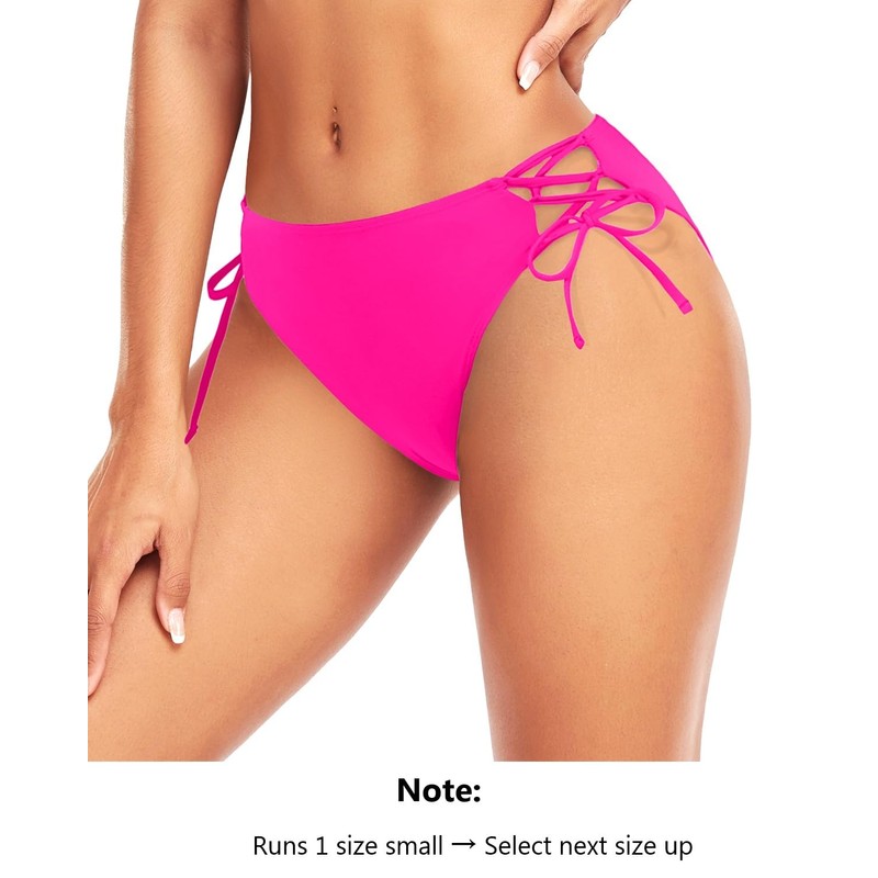 Zmart Women Low Waisted Bikini Bottoms - String Tie Side Bathing Suit Moderate Coverage Swim Bottom Hot Pink M
