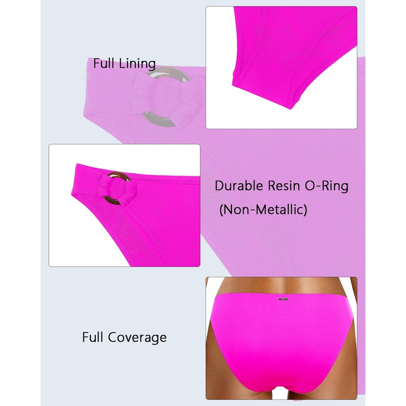 Zmart Women O Ring Bikini Bottoms Full Coverage Swimsuit Bottom Low Waist Low Rise Bathing Suit Pink L