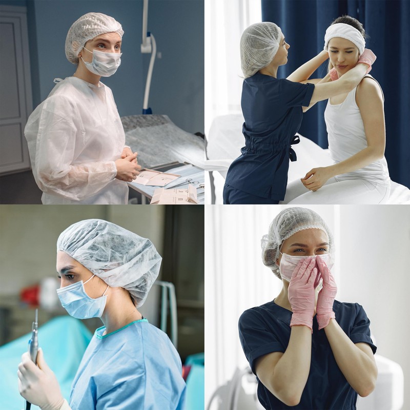 - The head cover is made of spun-bond polypropylene, latex free, lightweight and breathable.