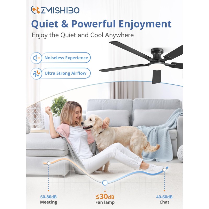 ZMISHIBO 60 Inch Ceiling Fan with Light, App&Remote Control, Flush Mount Low ...