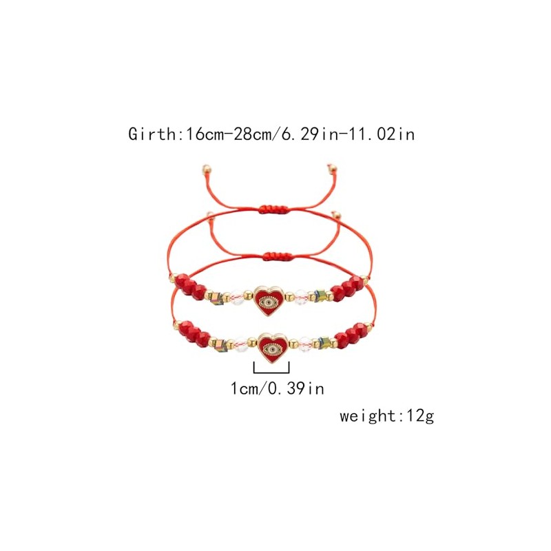 ZMJK Adjustable Heart Beaded Bracelet 2pcs Love Eye Braided Bracelet for Women Men Beaded Rope Anklet Jewelry Evil Eye Bracelets Couple Best Friend Bracelets (Red)