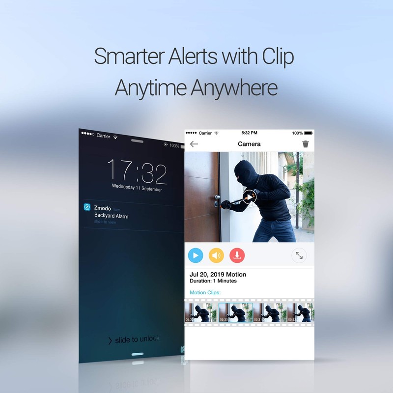 - 【Zmodo cloud recording with 1-month free trial】 instead of receiving just pictures you'll be notified with video clips in Zmodo App when motion is detected Motion video clips are saved in the cloud Enjoy a free trial 30-day of Zmodo 7 day cloud recording plan With the plan you can review save and share footage at any time and reduce false alerts with cloud intelligence