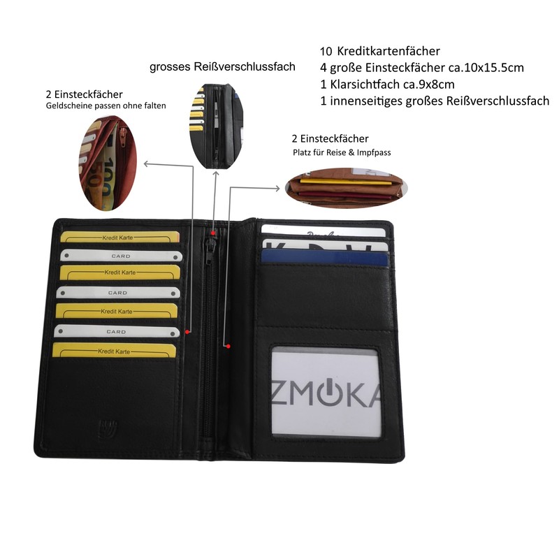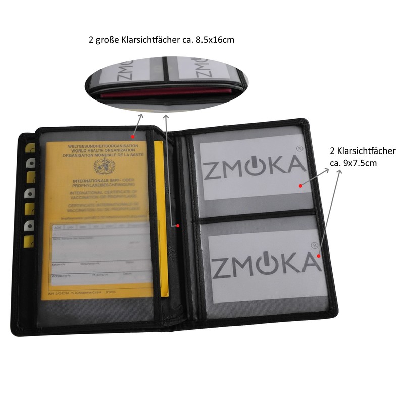 zmoka Travel Document Folder Made of Soft Leather with RFID Protection - Card Folder (Selection), black, Document folder