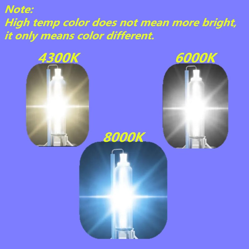 - Note: High Temp Color Does Not Mean More Bright, It Only Means Color Different. Please Make Sure The Specific Type of Bulb Before Placing Order ! Package Includes: 2Pcs HID Xenon Bulbs