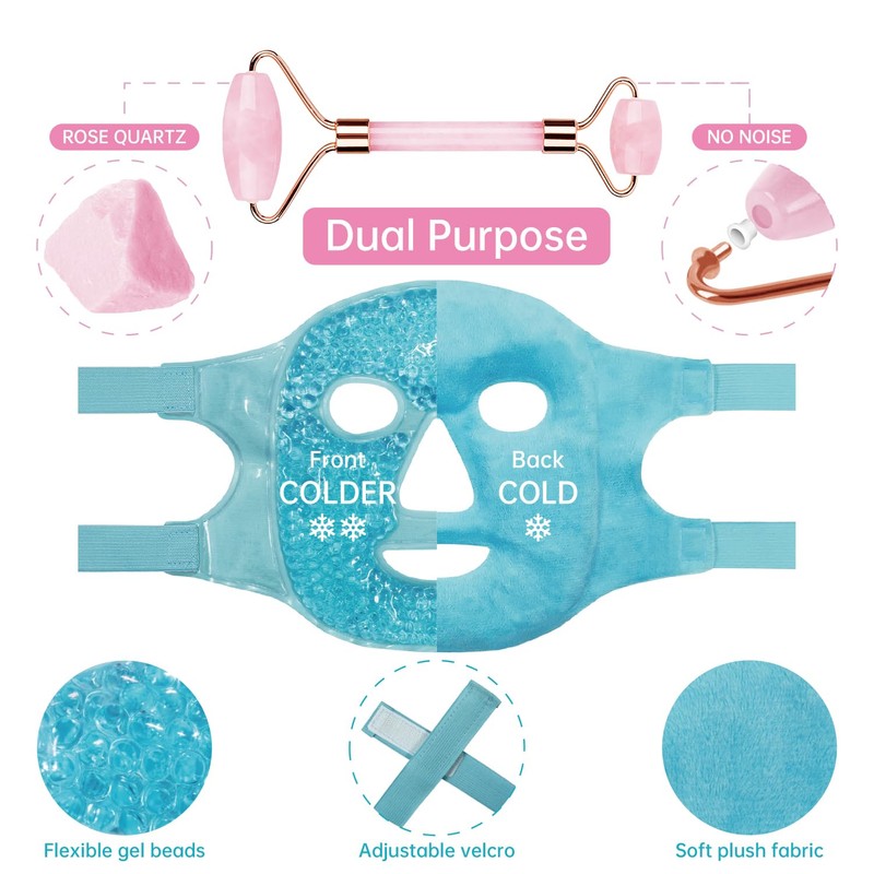 - Cooling Relief: The cold face mask molds perfectly to the contours of your face, delivering an invigorating chill that soothes inflammation, reduces puffiness . Pair it with the ice face roller to enhance lymphatic drainage, diminish fine lines, wrinkles, lifting and firming the jawline and face, and achieve a radiant, glowing complexion. This dynamic duo is perfect for post-workout recovery, relieving migraines, or simply indulging in a luxurious at-home spa treatment.