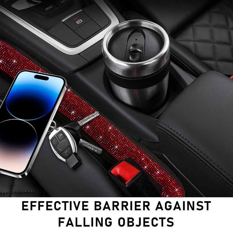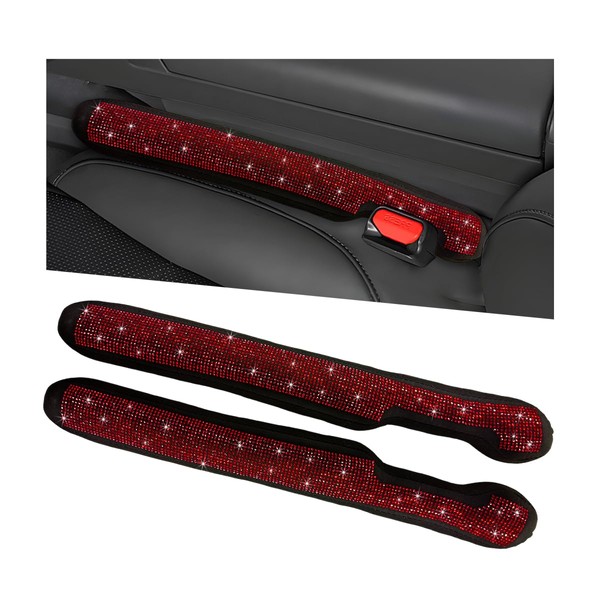 ZNDAW 2PCS Bling Car Seat Gap Filler, Sparkling Rhinestone Side Seat Gap Blocker Stop Things from Dropping, Soft Foam Car Truck Filler Blocker Fill The Gaps Between Seats and Console (Red)