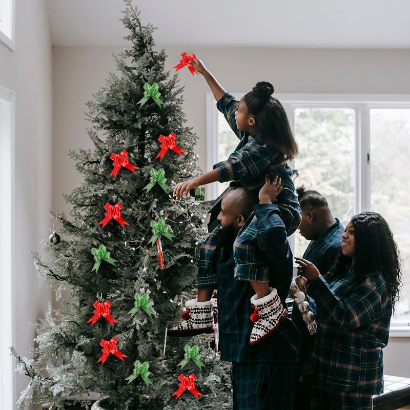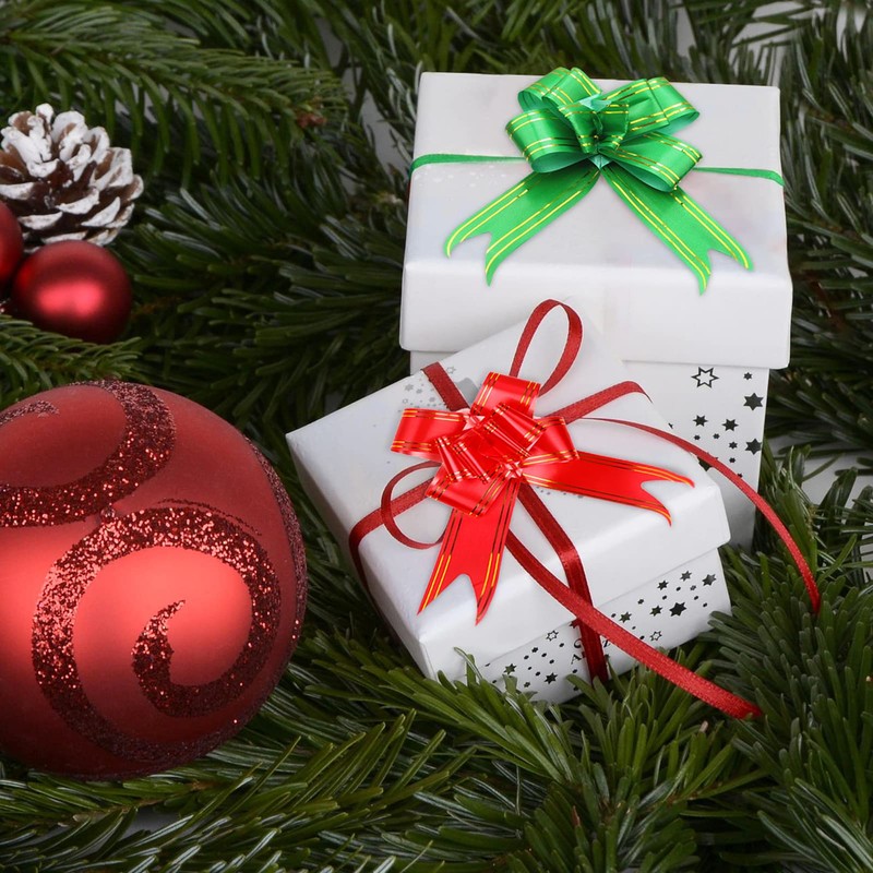 - Features: The colorful wrap ribbon bows with golden lace make your gift packaging more exquisite and eye-catching. The classic red and green colors make your Christmas party more festive.