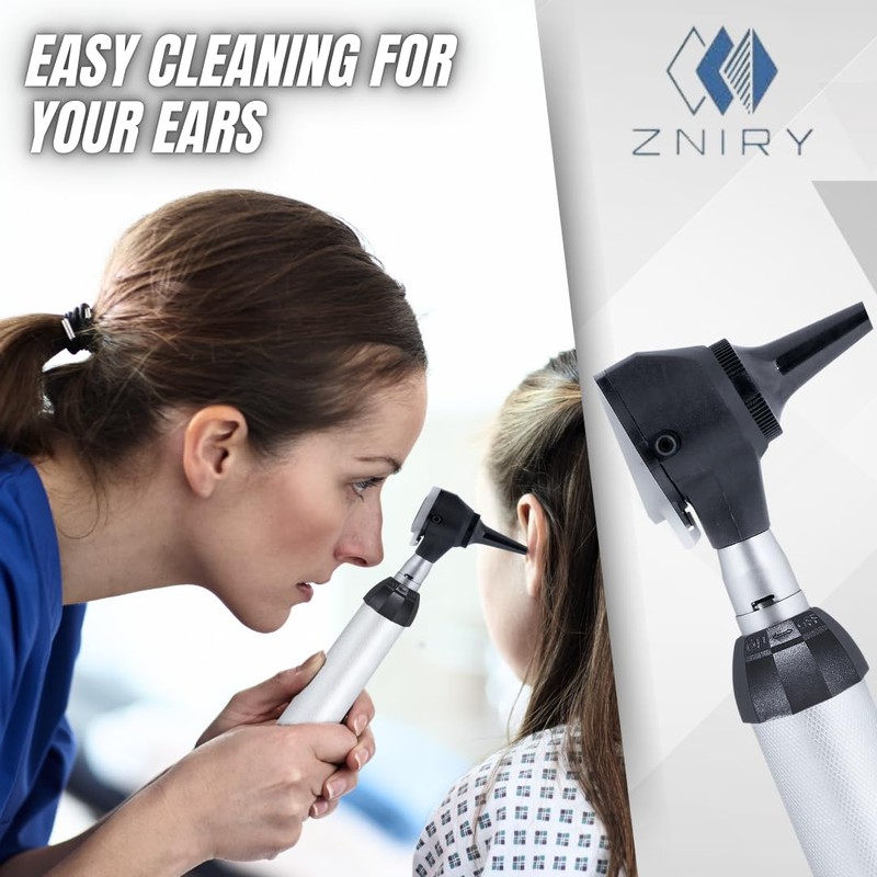 Zniry Ear Scope Otoscope Set - LED Light, 3X Magnification, Ear Infection Checker, Disposable Speculums & Carry Case for Medical Students, Nursing & Veterinary Use