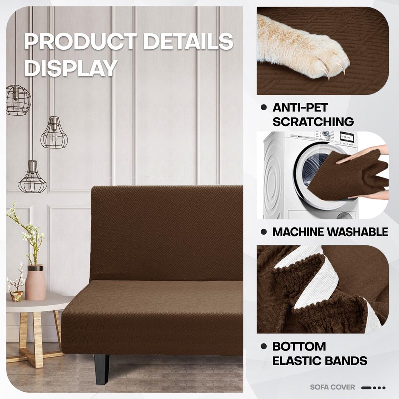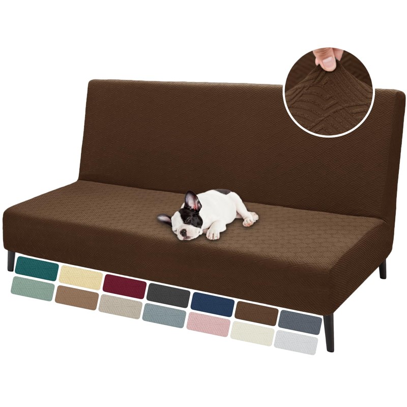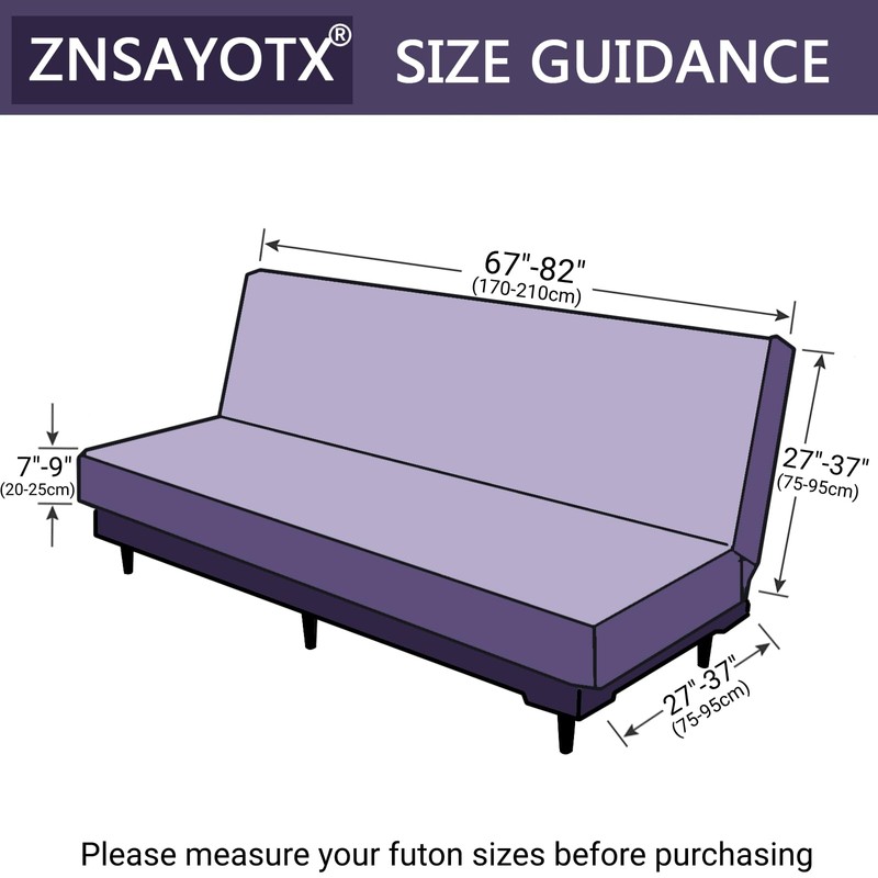 - 【Universal】- The latest stretch jacquard 1 piece futon cover with elastic strap, which perfect fit and protect your furniture in all directions. The futon cover is suitable for seat widths up to 67"-82"(170cm-210cm), please view the size guide before purchasing. ZNSAYOTX stretchable elastic futon cover perfect fit for armless sofa, sofa bed, leather or cloth futons