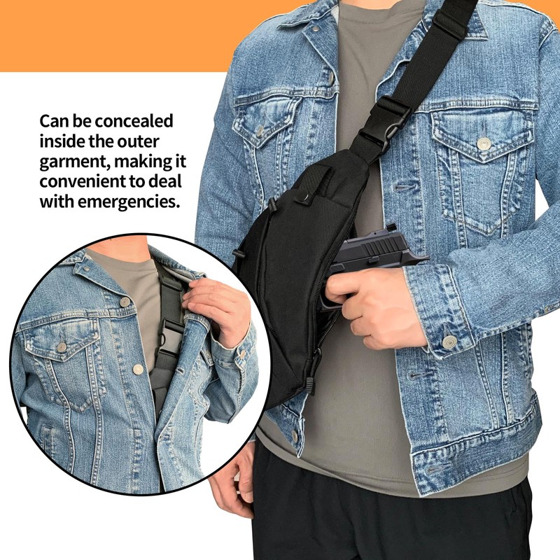 - Tactical Sling Bag features a built-in holster in the side pocket. It keeps your concealed carry separate from daily essentials. Perfect for quick draws, whether you're running errands or at the range. Great for men and women.