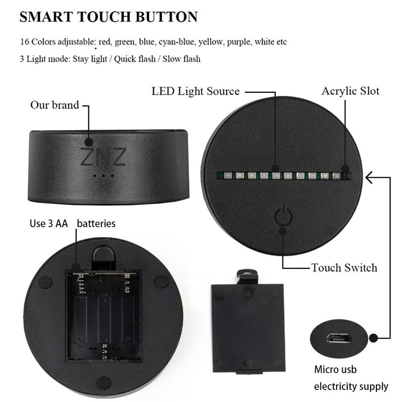 - 16 colours and 3 modes: this 3D dimmable lamp can be switched between 16 colours, depending on the mood and environment, you can choose different modes and colours.
