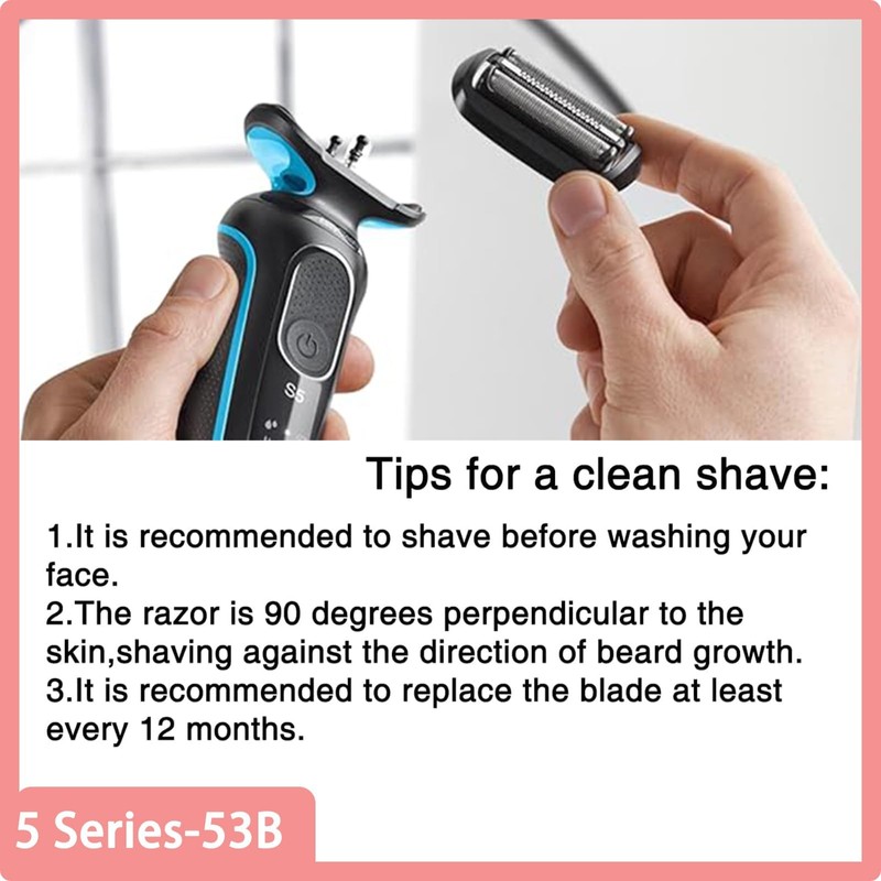 • [New Upgraded Shaving Technology]:53B replacement heads compatible with braun series 5 replacement head featuring advanced 3-floating blade cutting technology, this shaver efficiently manages beard length in all directions while ensuring safe contact to protect your skin from cuts,for braun series 5 replacement foil and cutter,For a pleasant shaving experience