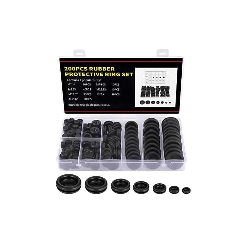 Zocipro 200Pcs Rubber Grommet Kit, 7 Sizes Rubber Hole Plugs Electrical Wire Gaskets Assortment, Rubber Grommets for Protecting Wires, Plugs, Cables Holes