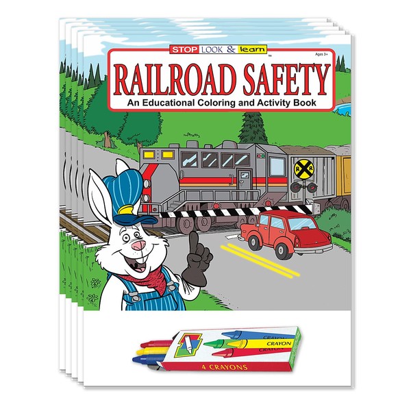 ZOCO - Railroad Safety - Educational Coloring Books (50 Bulk Pack, With Crayons) - Trains & Rail Road Crossing Awareness Handout - Fun Activities for Kids