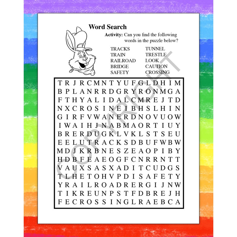 - Kids love trains, but trains can be very dangerous if you don't practice safety. The Railroad Safety Coloring and Activity Book helps teach children about the need for safe behavior and caution around trains and railroad tracks. Fun activities include coloring pages, connect the dots, puzzles, and much more!