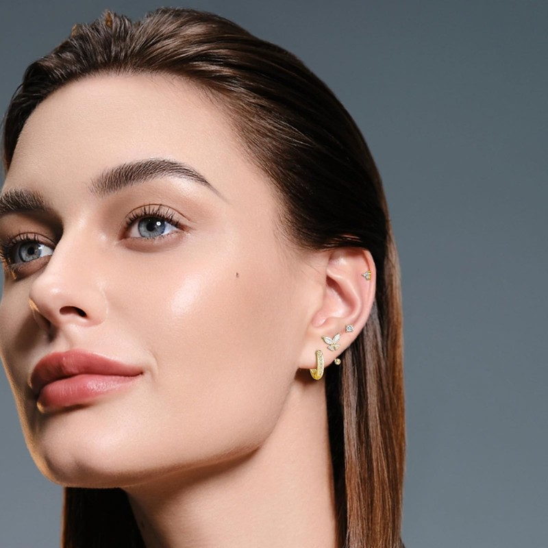 - Gold Earrings Set:Our earring set perfectly combines hoop earrings and stud earrings, with a variety of different styles to match, meeting your daily dressing needs. Can be worn with different clothes. Wearing alone,more choices every day.