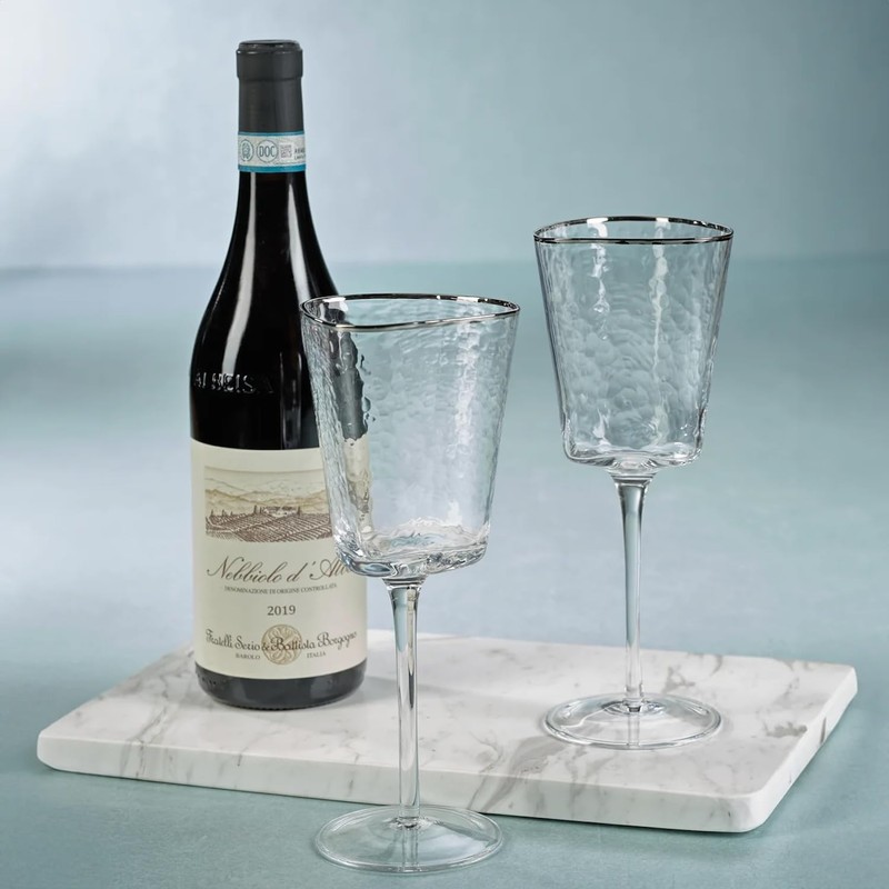 Zodax Aperitivo Triangular Stemware or Glassware - Clear with Platinum Rim - Sets of 4 (Wine)