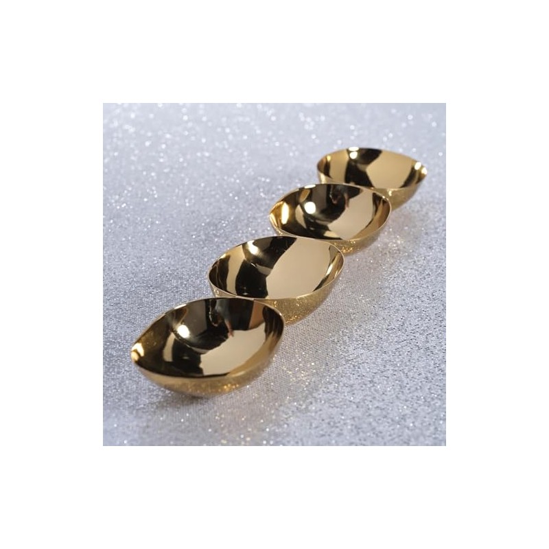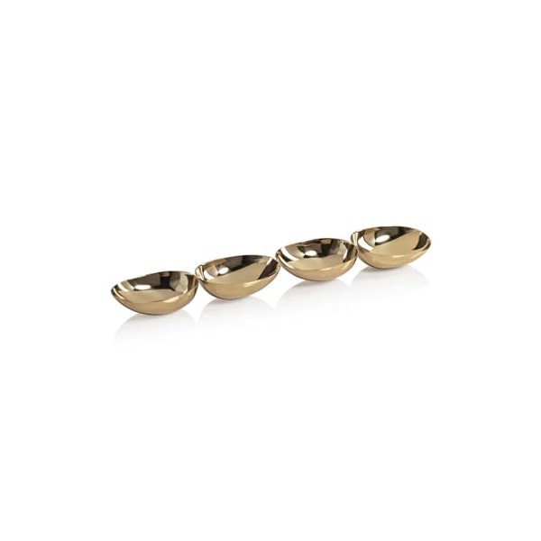 Zodax Sets of Polished Gold Nut, Candy, Appetizer or Sauce Serving Bowls (Linear Four Bowl)