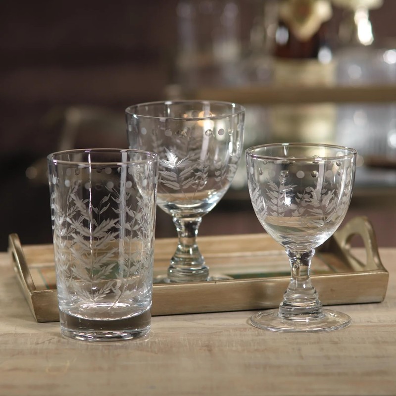 - Perfect for both serving beverages and as decorative pieces, Spring Leaves Glassware adds a fresh and stylish flair to any setting.