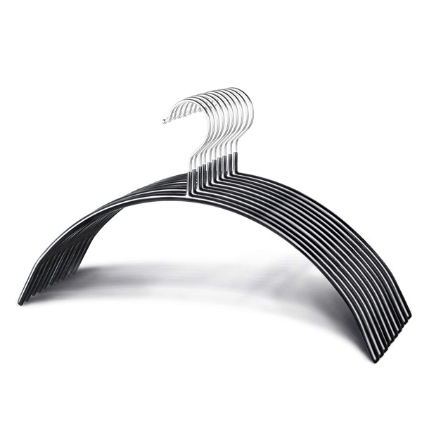 - INCLUDES - 10 Black arc-shaped hangers which measure 16.5 x 7.75 inch (41.91 cm x 19.69 cm)