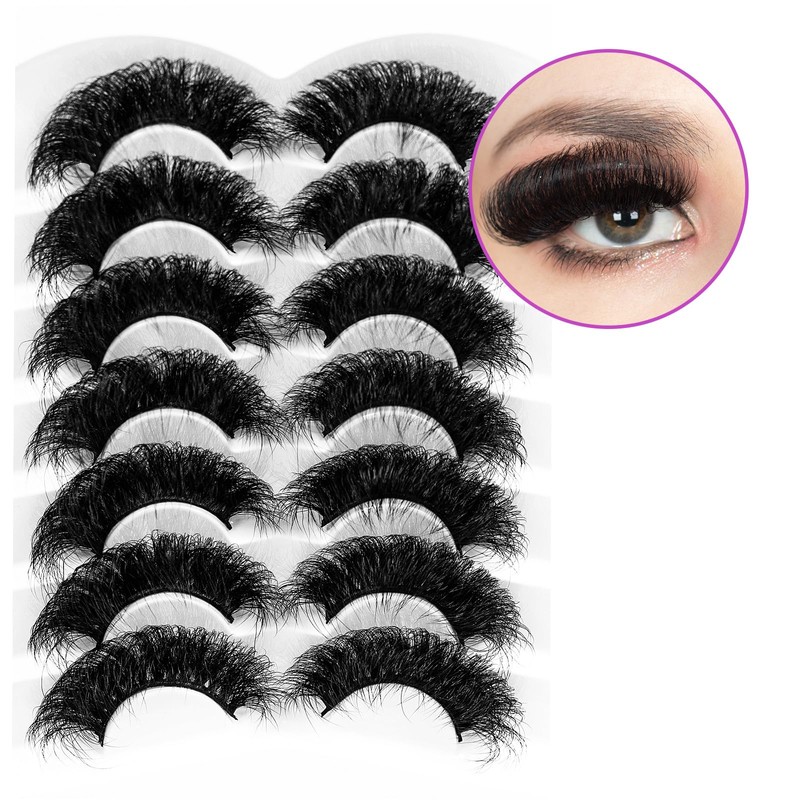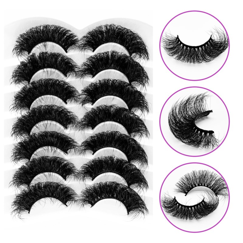 - [100% mink hair] The eyelashes are naturally shiny, very soft, smooth, close to the skin, dense, fluffy and soft. Stereoscopic design, fully showing your eyes,7 pairs (25mm)