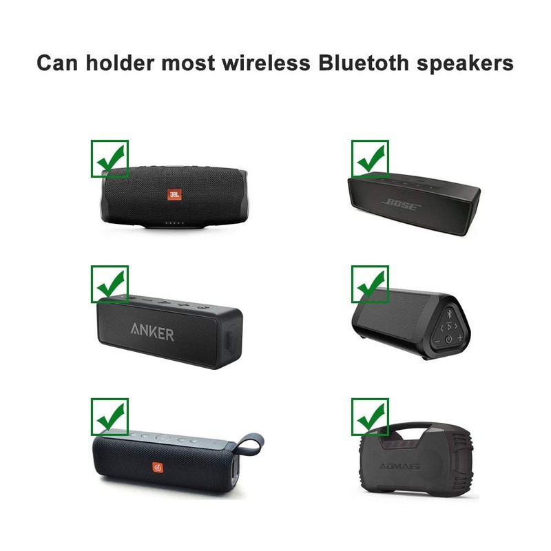 - Broad Compatibility - Adjustable velcro strap fits most bluetooth speakers up to 16 inches in circumference. You can also hang some accessories like drinks, water bottles,towels, sunglasses and golf hats,etc.