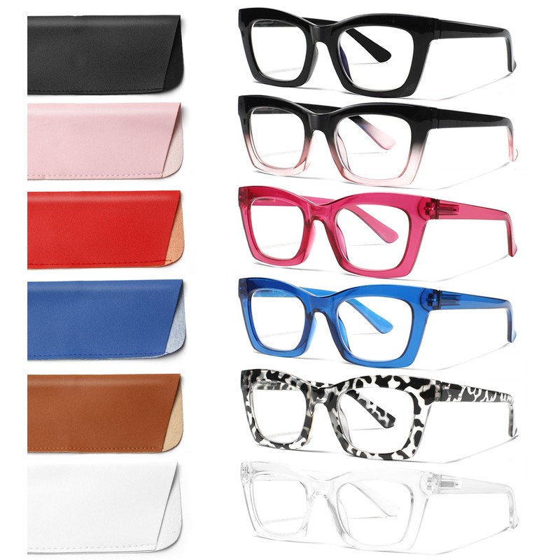 - [Excellent Value for Money]: 6 pairs of blue light readers and 6 PU leather case; You can place a pair of readers anywhere you need; the 6 different colors glasses not only allow you to match a variety of outfits but also make a wonderful and practical gift for friends and family