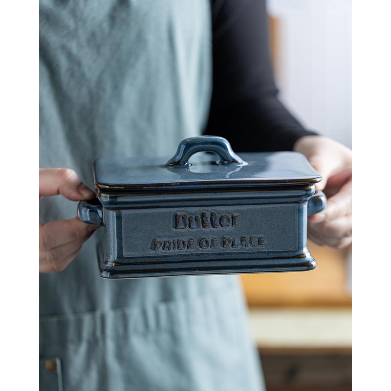 - Ceramic Lid: The accompanying ceramic lid protects your butter from dust, ensuring it stays fresh. The handle on the lid makes removing this covered butter dish quick and easy whenever you need to serve your butter