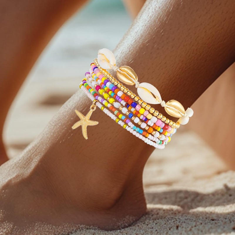 Delicate beach anklets with shells,starfish and beads decorate you perfectly-Boho Style!