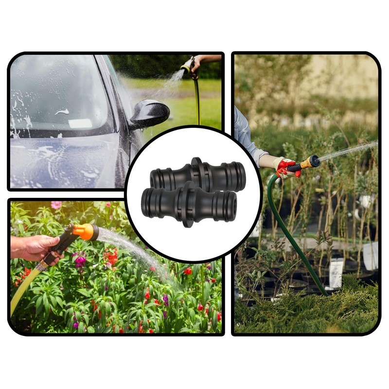 - [High Quality Material]:This set includes 2 black hose connectors with a length of 5 cm and 2 male ends with an outer diameter of 1.5 cm. The hose connector is made of high quality polypropylene (PP) material to ensure its durability and stability. PP material has excellent rust protection properties and can withstand most climate and water pressure conditions, ensuring long-term, reliable use.