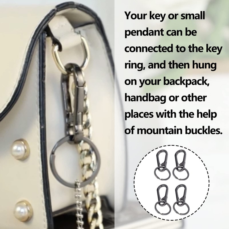 ZoeTekway Pack of 4 Metal Carabiners Black Key Chain Carabiner Key Ring Removable Snap