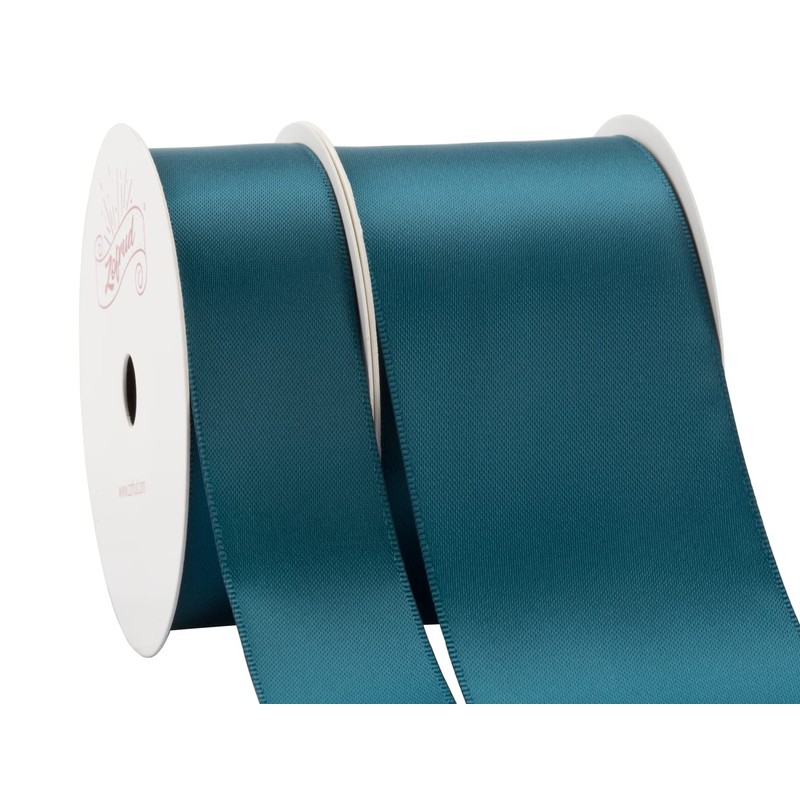 Zofrud 2 Rolls of Teal Double Faced Satin Ribbon - 18 Meters Total (25mm and 50mm x 9M) - Ideal for Crafts, Gift Wrapping, and Weddings