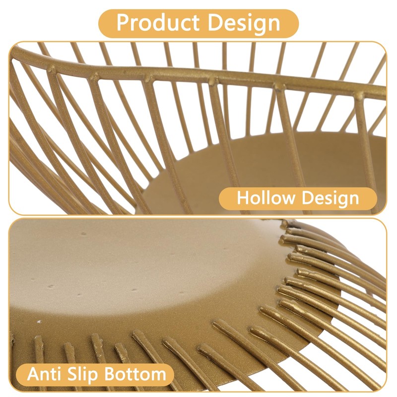 - Premium Material: ZOFUN Fruit baskets are made of quality iron with golden coating, make fruit baskets more water and damp proof, so wear resistant that can service a long time.