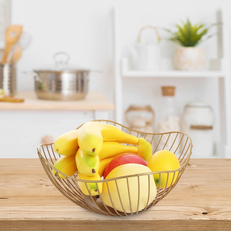 - Gold metal fruit bowl is a great addition to your kitchen countertop and living room decoration.