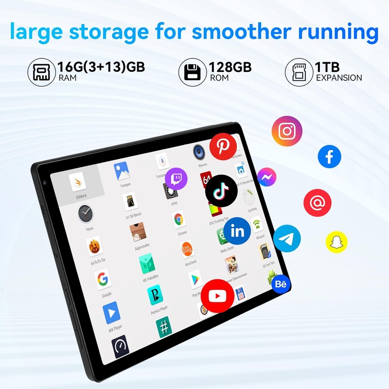 - 【High Performance】Get ready to zip through everything on the latest Android 14 tablet. An advanced 8-core processor and massive 16GB RAM (plus smart tech for extra smoothness) deliver desktop-like speed. Game hard, stream your favorite shows in HD, or run multiple demanding apps at once – no frustrating lag, just smooth sailing.
