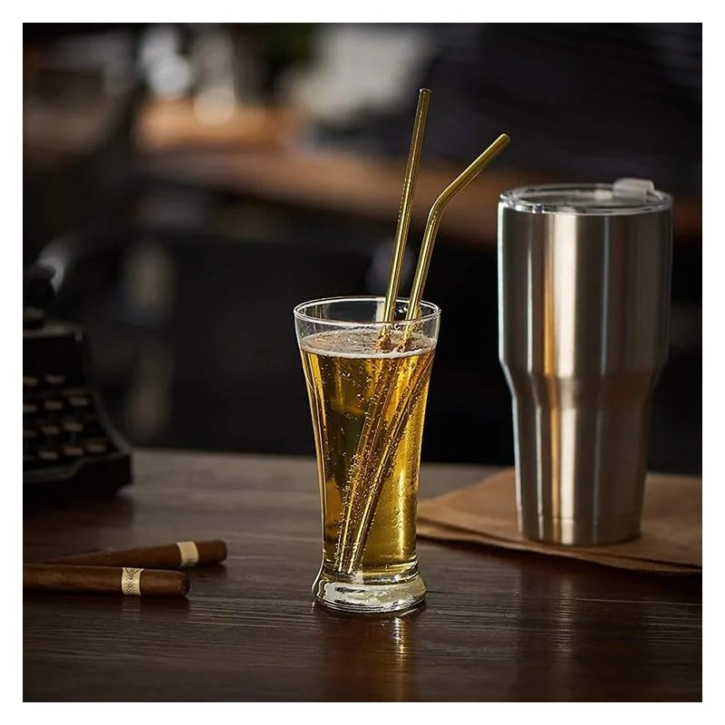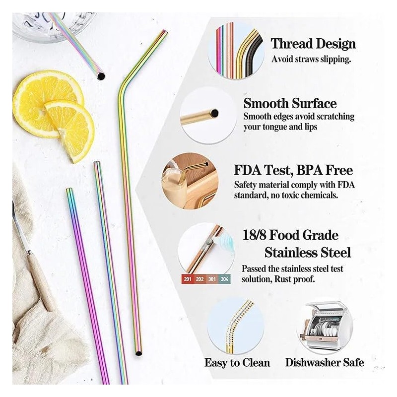 - 4-Piece Set – Includes 4 reusable stainless steel straws (8.5 inches) and 1 cleaning brush for easy maintenance.