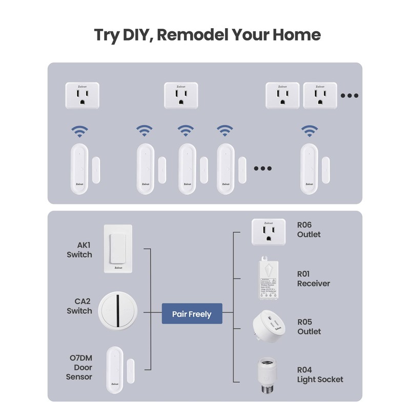 - DIY AS YOU WISH: The door sensor can choose linkage mode as you wish, enabling you to open the door to turn on or off the plug; Moreover, it can be programmable and expanded at will; Also work with Zoiinet receiver and light socket