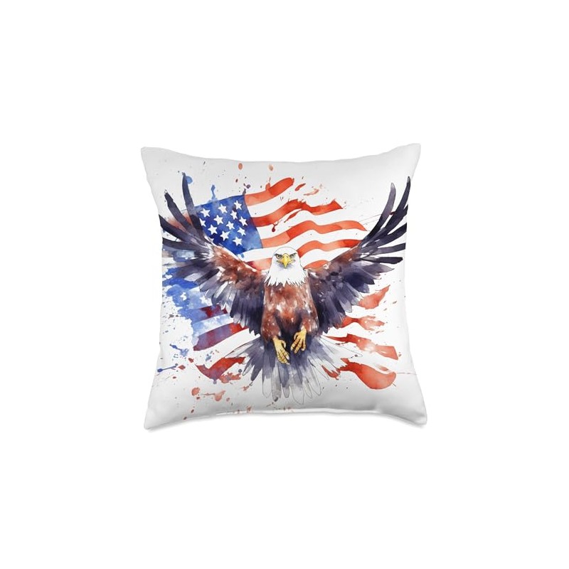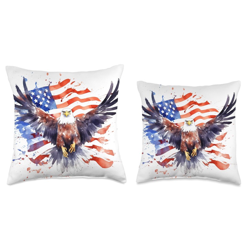 ZOK OMO Ahba American Bald Eagle Handpaint Style Throw Pillow, 18x18, Multicolor