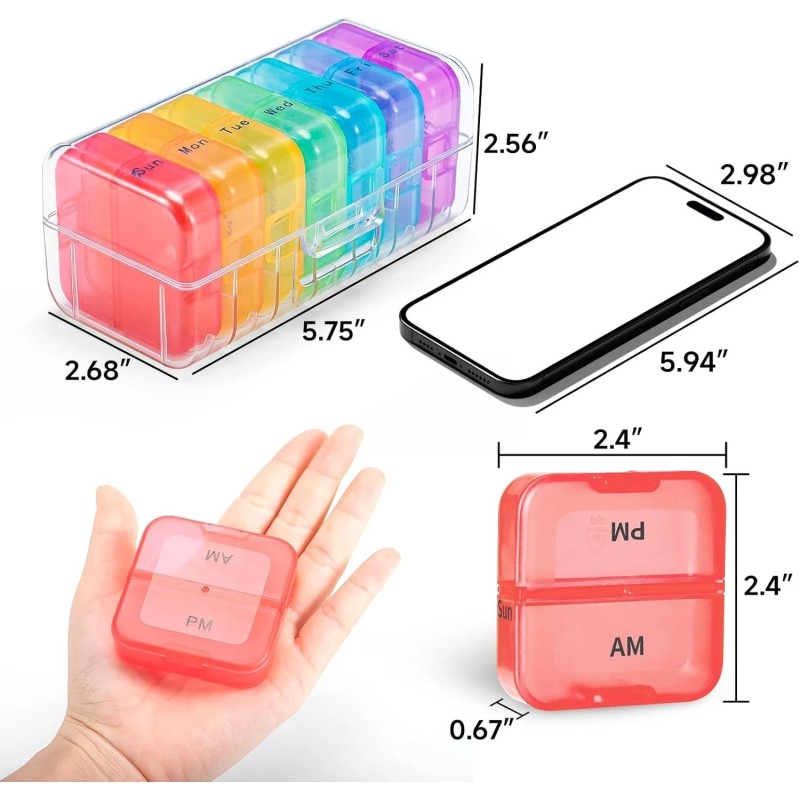 Zoksi Pill Organizer 2 Times a Day Weekly 7 Day Pill Box Daily Am Pm Pill Org...