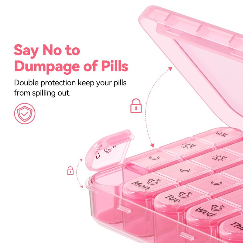 • Double Protection for Security:With a sturdy ABS outer case and tightly closing compartments, this organizer ensures your pills stay safe and secure, preventing spills at home or on the go
